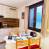 Offene Küche mit 2 elektrischen Kochplatten, Mikrowelle, Geschirrspüler, Kühlschrank, Wasserkocher, Toaster, Kaffeemaschine.