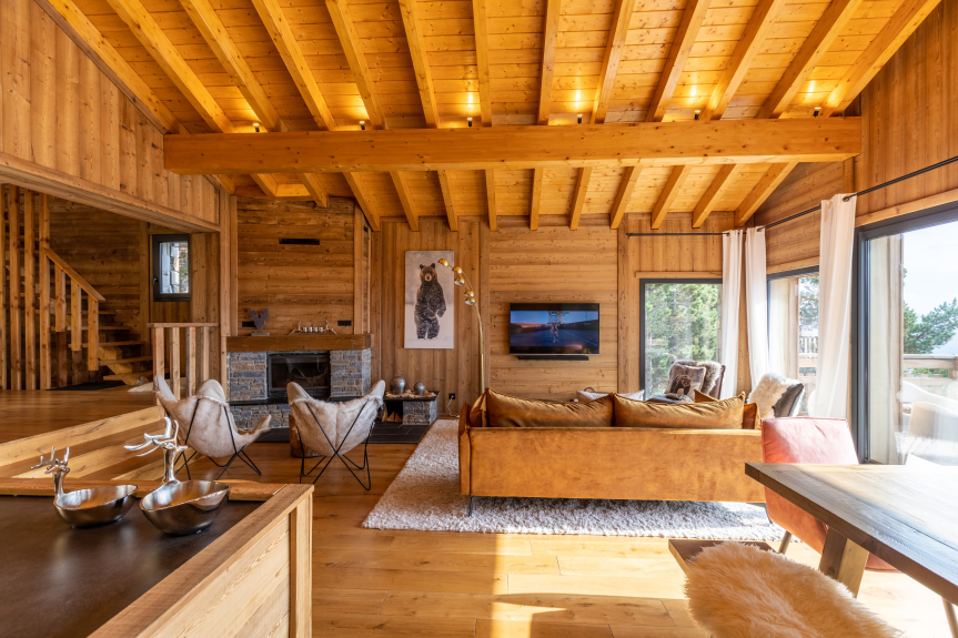 Vermietung Luxuschalet Chalet spa/piscine chauffée, vue lac, accès pistes de ski, brasero, classé 5*