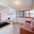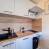 Küche mit 2 Kochplatten, Kühlschrank, Mini Geschirrspüler, Mikrowelle, Toaster, Wasserkocher und Kaffeemaschine.