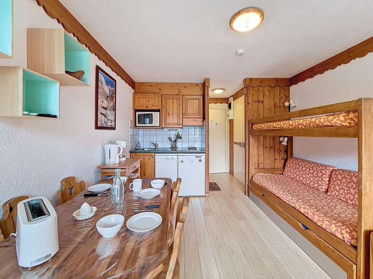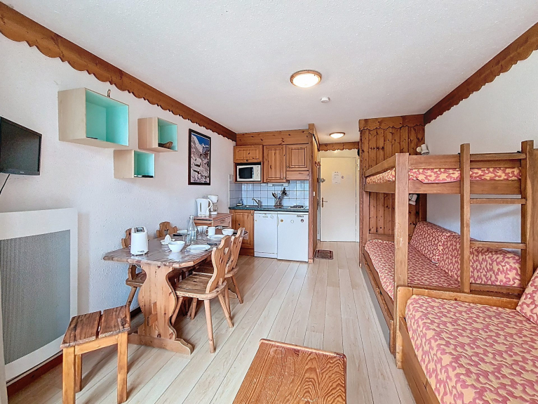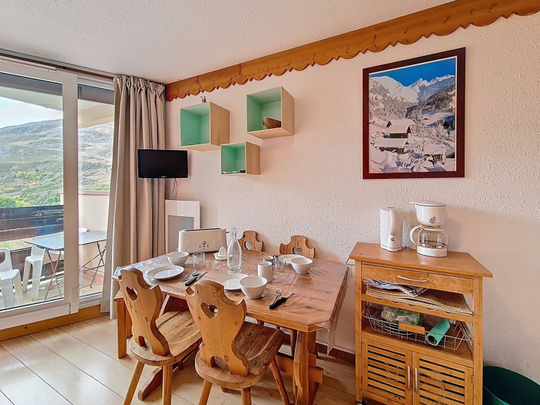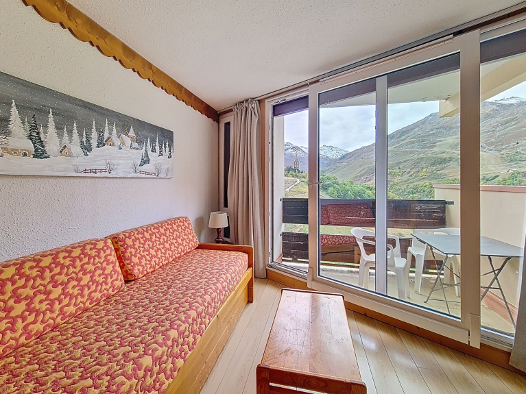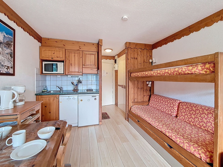 Das Studio ist 20 m² groß und bietet Platz für 3 Personen. Es befindet sich im 3. Stock mit Aufzug und hat einen Balkon mit Südausrichtung.
