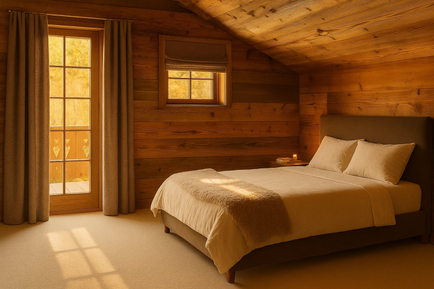 Die Renovierungsarbeiten werden im Dezember abgeschlossen sein und das Chalet wird zu diesem Zeitpunkt möbliert sein. Die derzeit online gestellten Fotos werden von IA generiert: Sie sind nicht vertraglich bindend, vermitteln aber eine getreue Vorstellung vom Stil und der gewünschten Endausführung.