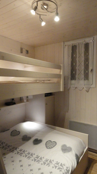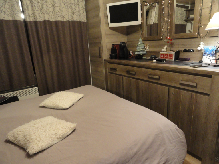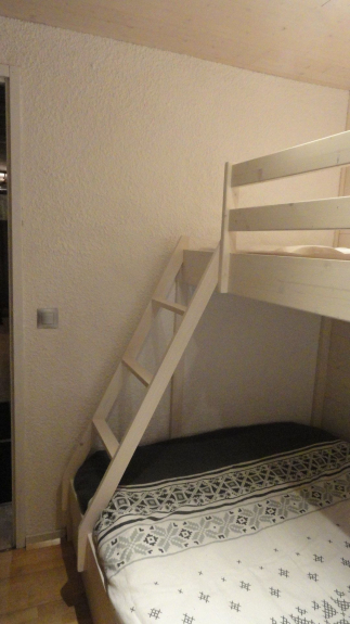 Schlafzimmer: Bett 140 X 190 + ein Mezzaninbett 90 X 190 für Kinder ab 6 Jahren (max. Gewicht 70KG). Schrank zur Aufbewahrung von Gegenständen.