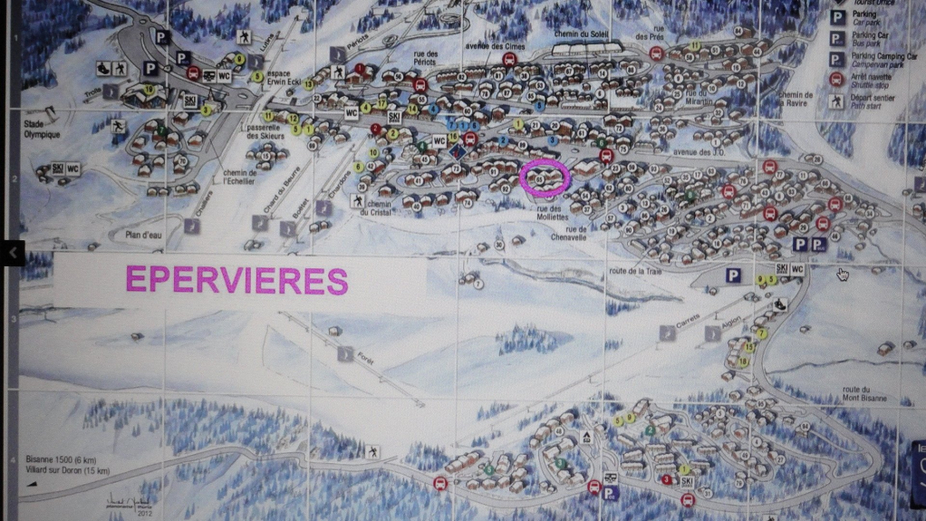 Ein Skischrank befindet sich 5 Meter von der Wohnung entfernt. 2 Schlitten.