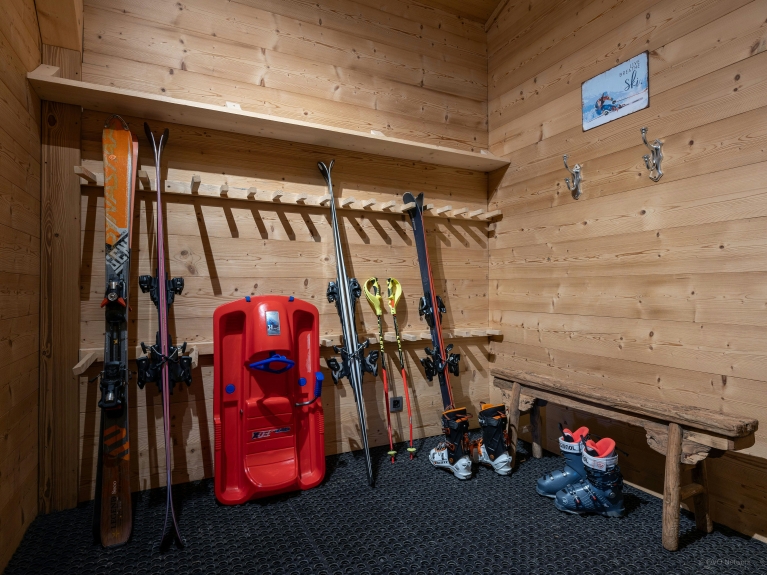 Besonders praktisch im Winter ist der zweite Eingang über den Skiraum, sodass Sie es sich gleich bei Ihrer Ankunft gemütlich machen können. Dort finden Sie eine Waschmaschine und einen Trockner. Im Freien gibt es zwei Parkplätze und einen überdachten Unterstand für insgesamt drei Fahrzeuge.