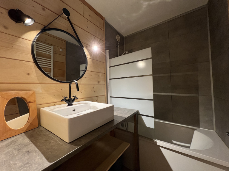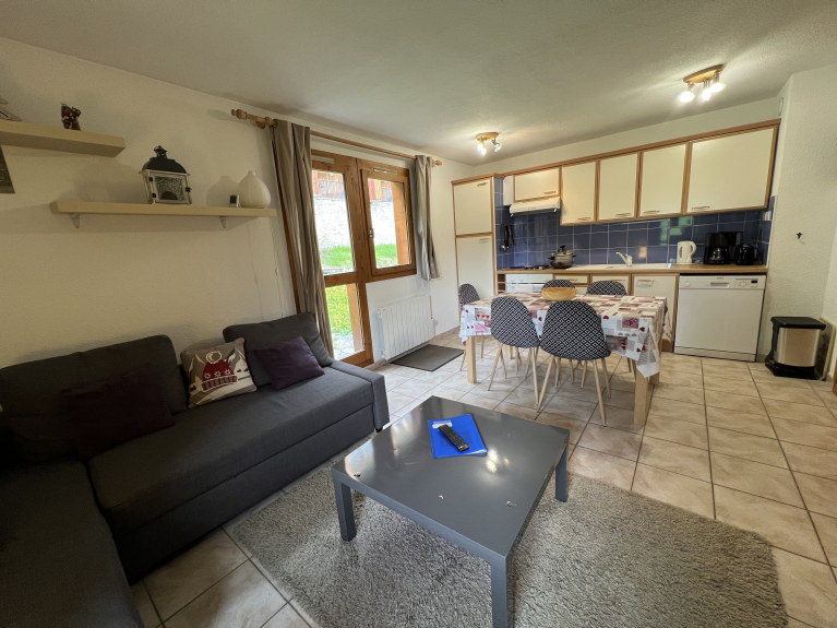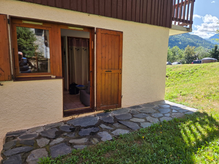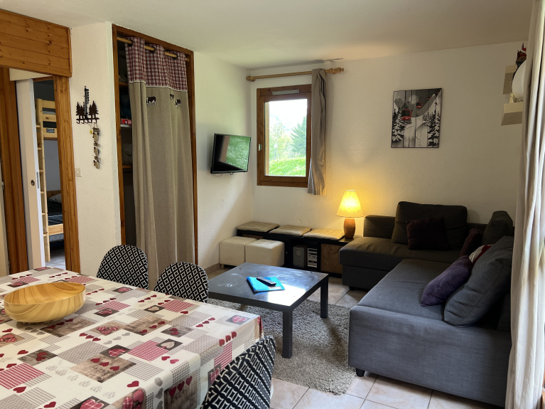 Charmante Wohnung T2 von 32 m2 in einer Residenz auf den Höhen des Dorfes Montchavin mit einem Gartenbereich.