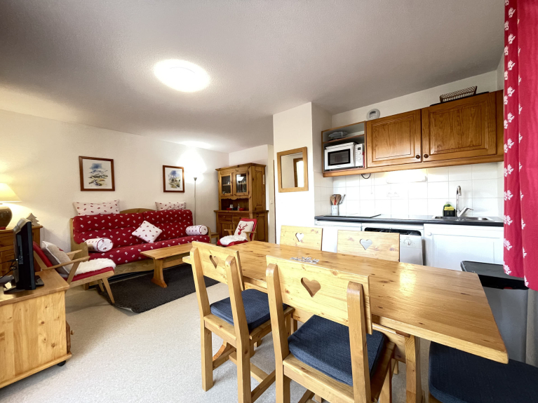 Die Residenz besteht aus mehreren Chalets mit jeweils 5 bis 8 Wohnungen, die einen atemberaubenden Blick auf das Massif de la Vanoise bieten. Die Chalets befinden sich 30m von der Charmasson-Piste und 500m vom Zentrum des Ortes mit den Geschäften und der Seilbahnstation entfernt.