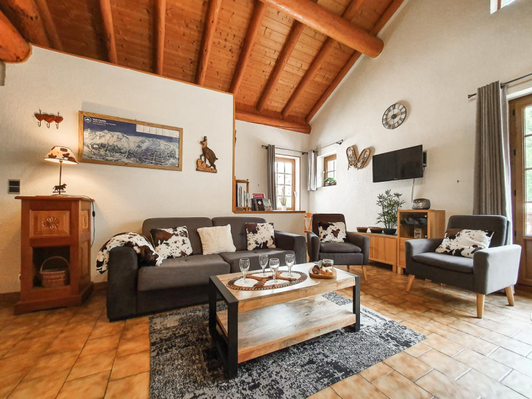 Dieses geräumige und gemütliche Chalet, in dem Holz bevorzugt wird, ist ideal für einen Urlaub mit der Familie oder mit Freunden.