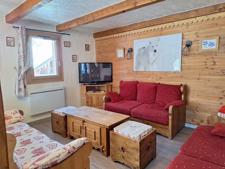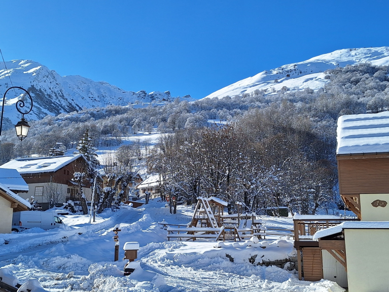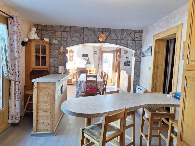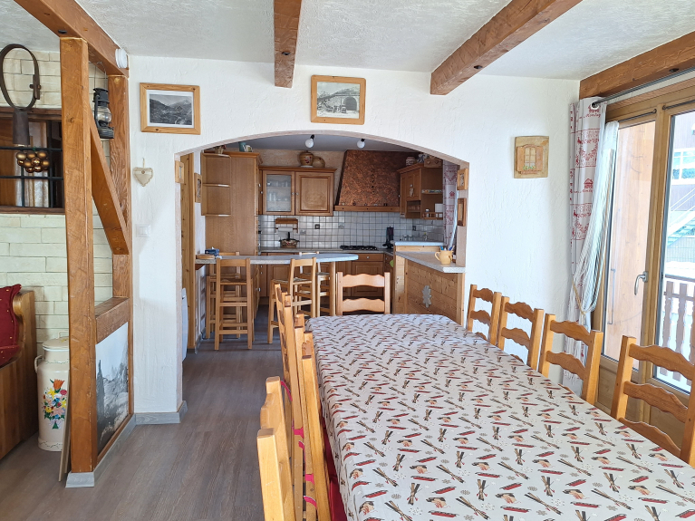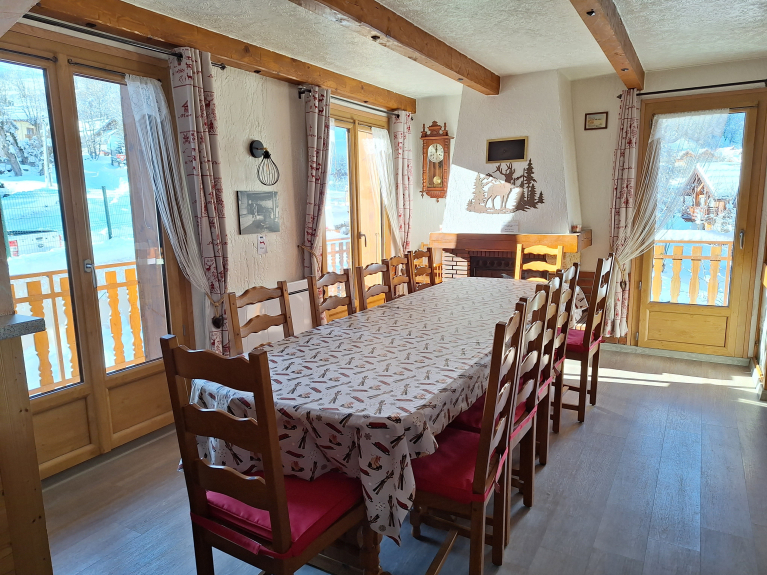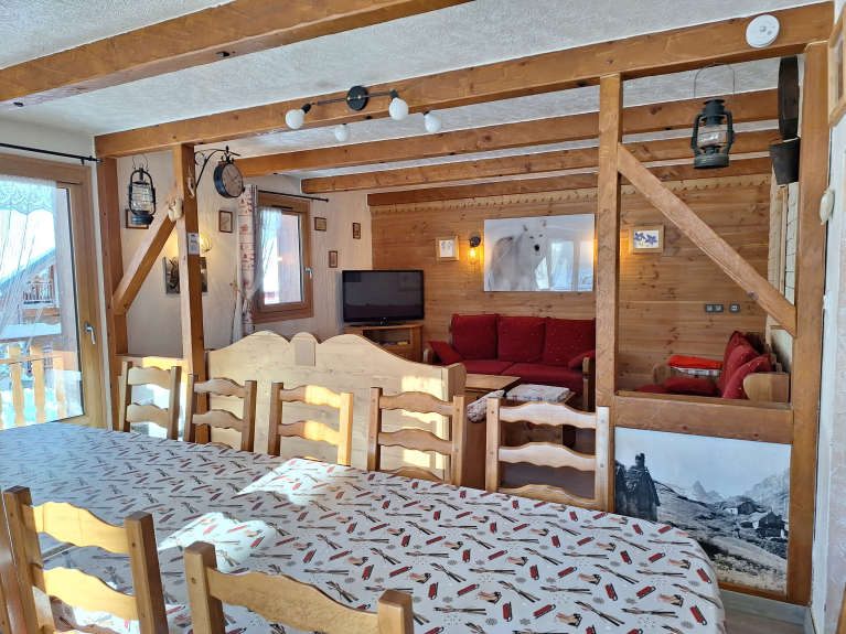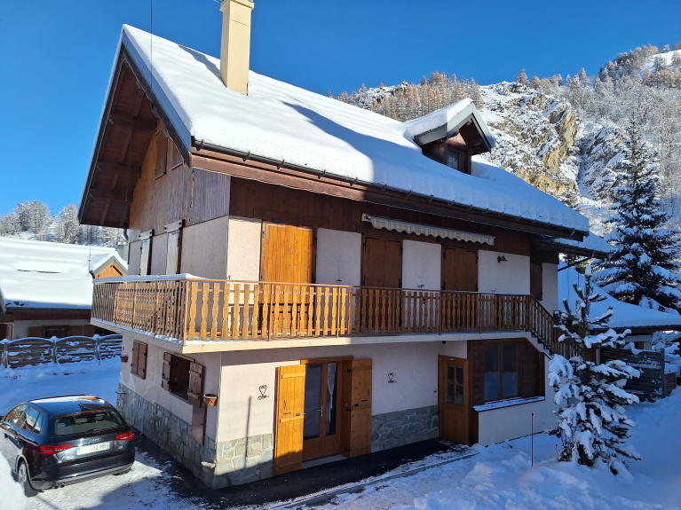 Wohnung in einem Chalet, 50 m von den Skipisten und Skiliften entfernt. Ski rein, Ski raus. Kostenloser Shuttlebus für die Fahrt nach Valloire ohne Auto.