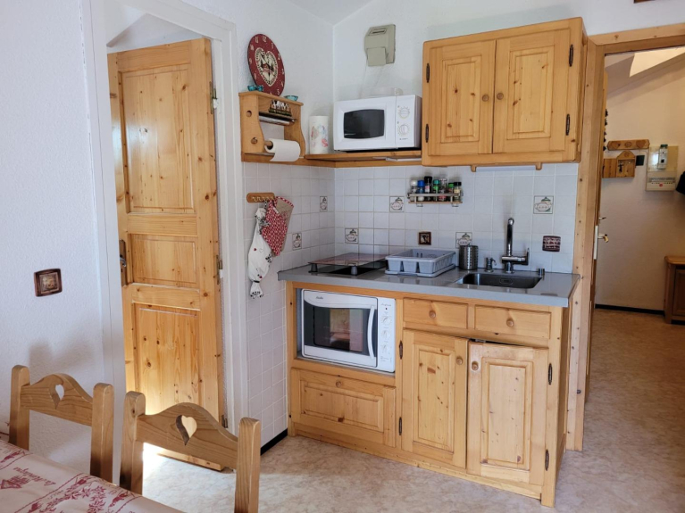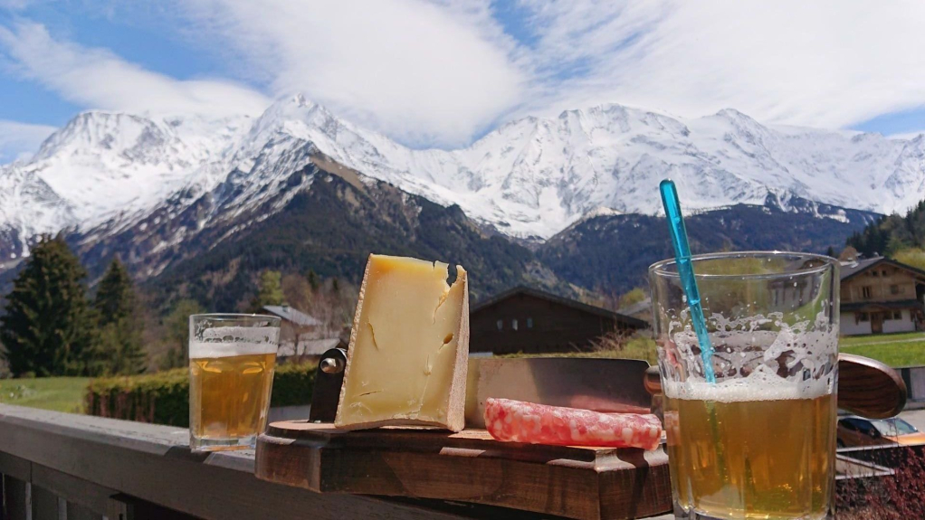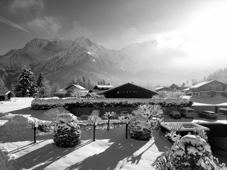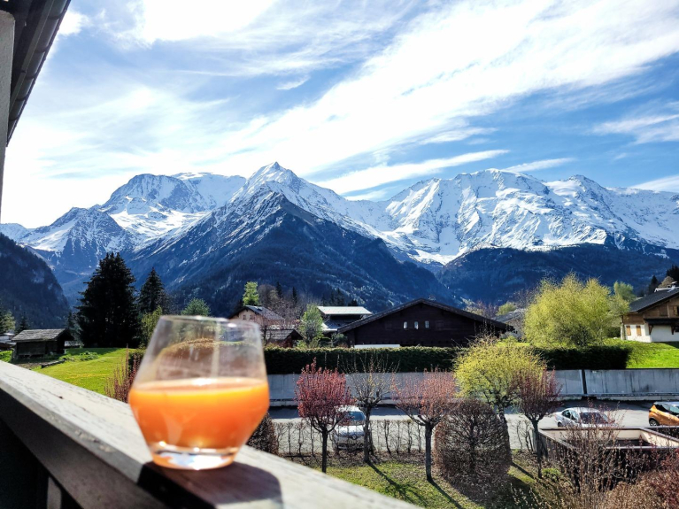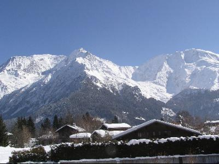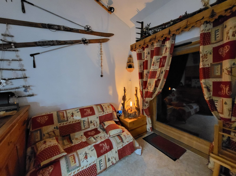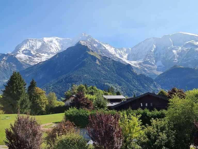 In einem kleinen authentischen Dorf, charmante Zwei-Zimmer-Wohnung, Südlage, außergewöhnliche Aussicht auf den Mont Blanc, am Fuße der Pisten, ruhige Residenz. Saint Nicolas, Saint Gervais, Skigebiet Megève