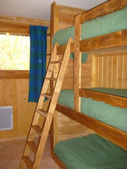 1. Schlafzimmer ein Doppelbett und 2 Etagenbetten für eine Person.