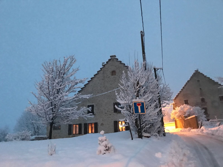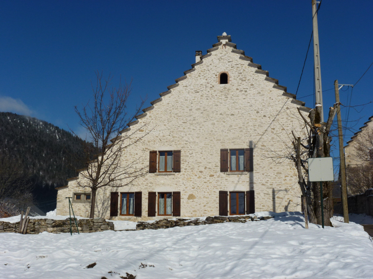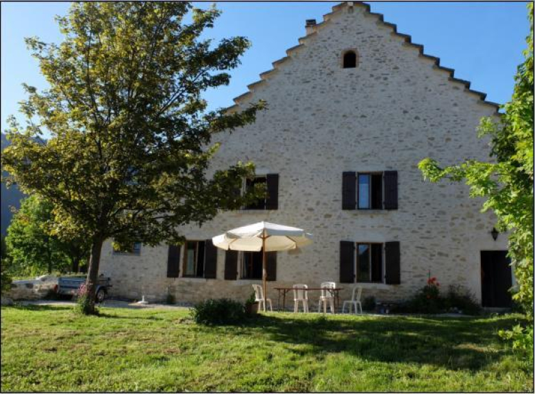 Großes Haus im typischen Stil des Vercors mit Privatgrundstück und Parkplatz.