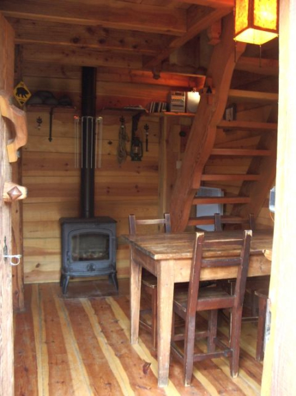 Erdgeschoss: 1 Dusche, 1 Kitchenette (Kühlschrank, Gasherd, Backofen), 1 Toilette, Holzofen.