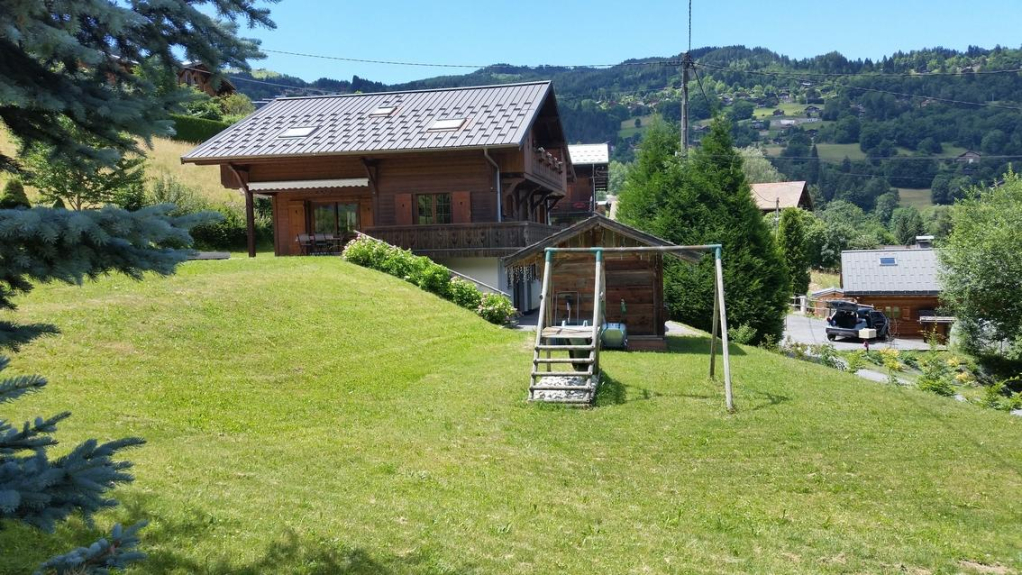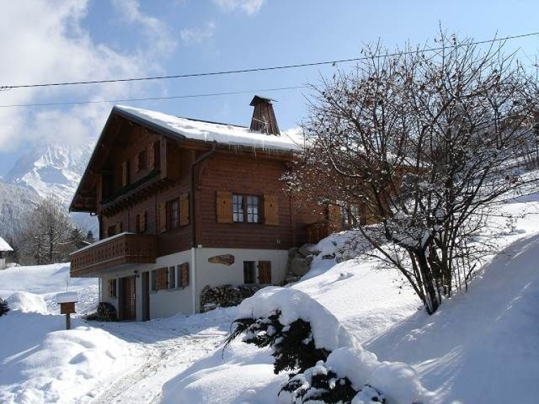 New chalet (2002), three floors, in a very quiet place, very beautiful view on Mont Blanc, very comfortable, nice decoration with savoyard furnitures, five bedrooms + four bathrooms.