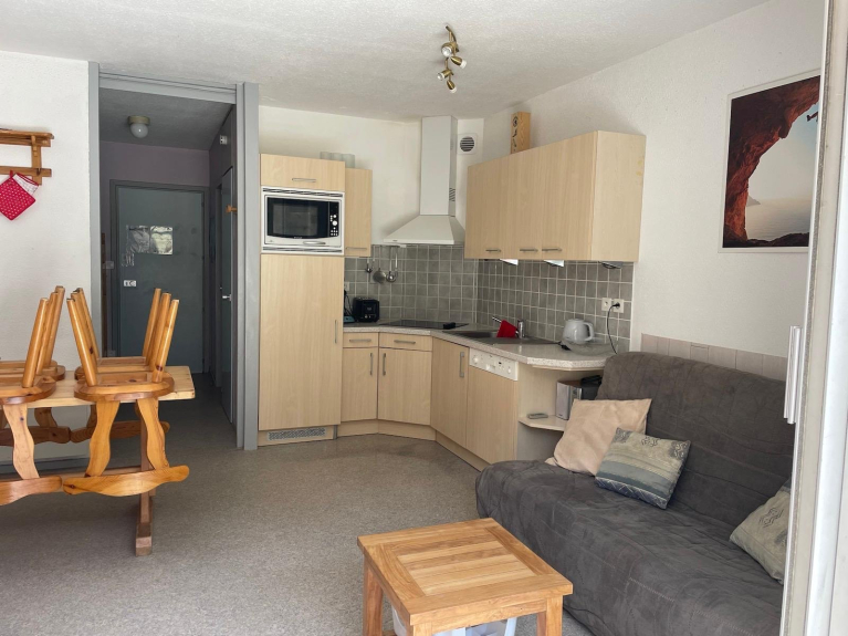 Apartment very well located at the foot of the slopes and playgrounds. Fully equipped kitchen with dishwasher. Animals not allowed.