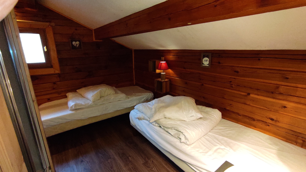 - upstairs: 2 twin bedrooms; 1 triple bedroom (1 single bed on the ground floor and 2 single beds on the mezzanine); 1 quadruple bedroom (2 single beds on the ground floor and 2 single beds on the mezzanine); 2 separate WCs.