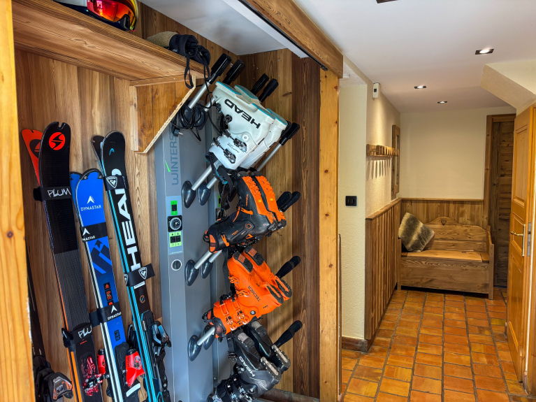 4 bedrooms, 3 bathrooms, 2 separate toilets, cozy living room with open fireplace, fully equipped, wood provided,TV Tnt, fre Wifi, shoe-warmer in the entrance, beds prepared upon arrival, delivery bread on request, balcony/terrace with deckchairs, return directly back to the chalet by blue or red slope, private parking, owner on the spot.