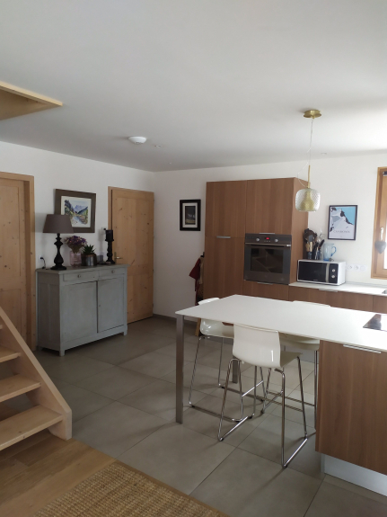 It is a spacious (130m²) and bright interior features. It's a very sunny place with large bay windows. It's close ( 200m) to bus shuttles and train station desserving ski resorts and the center of Chamonix.