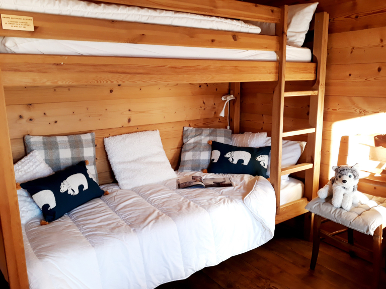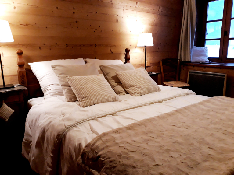 The chalet is located in a small hamlet of old farms, quiet, very sunny from the first rays of the morning, facing south above the village, not overlooked, at the start of hikes.
