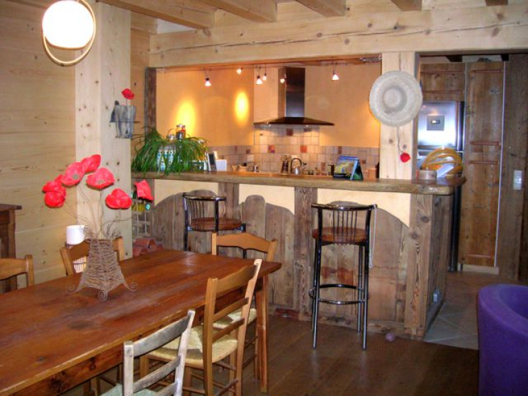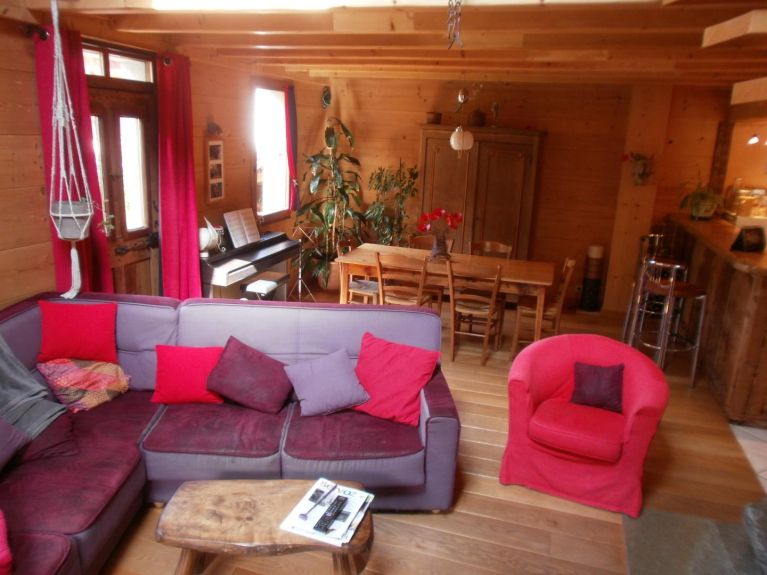 Country house of character of 120 m2, dating from 1782, entirely renovated, semi-detached, comfortable, with beautiful stone fireplace, located at the entrance of the village of Servoz, ideal for 4 to 6 people maximum.