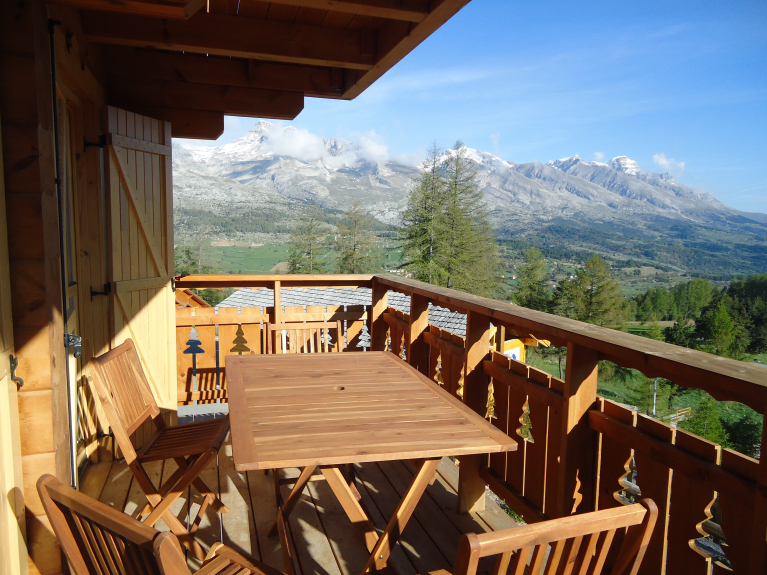Chalet for rent in solid wood, with high standard services, less than 5 minutes walk from the ski area and shops, with superb view in the resort of La Joue du Loup, which is located in the heart of the Dévoluy.