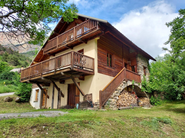 The chalet has a living area of 140 m2, it is placed on 600m2 of land and it is on one level on the east side and with a large terrace on the west side. The area is very quiet, the village of Les VIGNEAUX is in the peripheral zone of the Parc National des Ecrins and 15 km from BRIANCON.