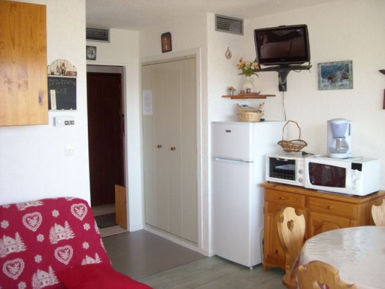 In a small and quiet residence with lift, ideally located on the heights of the resort, nice apartment on the 3rd and last floor for 4 people. The apartment includes a main room with a double bed and a closed bedroom with a double bed. All comfort (dishwasher, microwave, fridge with freezer, washing machine...). Very nice view on the Aiguilles d'Arves. South-west exposure. Very sunny. Balcony with furniture. Cellar & ski locker in closed room. Private parking. Grocery store nearby. During the winter season, access to the slopes by the Soleil chairlift (possibility to buy ski passes at this lift) and return to the residence on skis. Free shuttle in the resort (passes at the foot of the Residence). The resort is part of the Sybelles domain, the 4th largest ski area in France with 310 kms of marked runs. In summer, there are numerous hikes starting from the resort and in the surrounding area. Animations for children and adults organized by the Tourist Office.