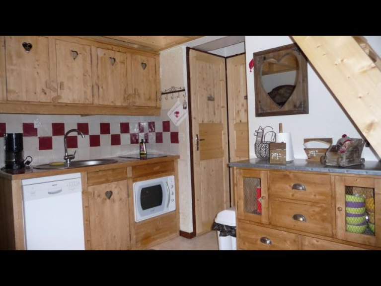 Interior: Apartment with mezzanine, well furnished and decorated in the mountains, fully equipped. Efficient electric heating. On the mezzanine 3 beds composed of a 140x200 bed and a 80x200 bed.