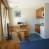 Kitchen area with mini-oven, electric hob, fridge, microwave oven.