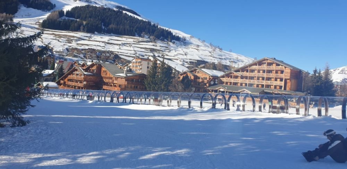 Direct access to the ski lifts (less than 50 m) in front of the ski schools.