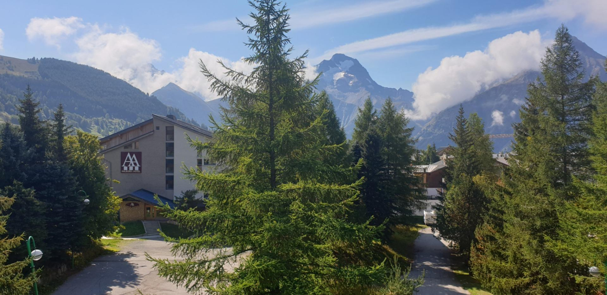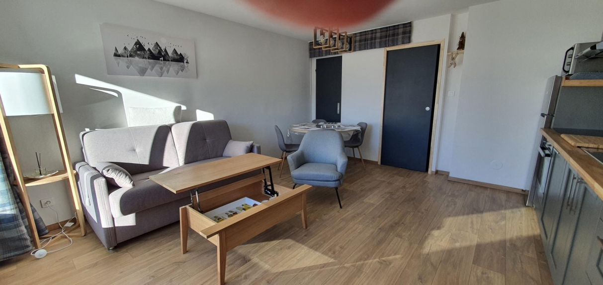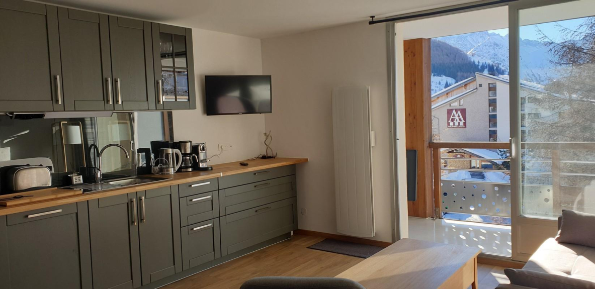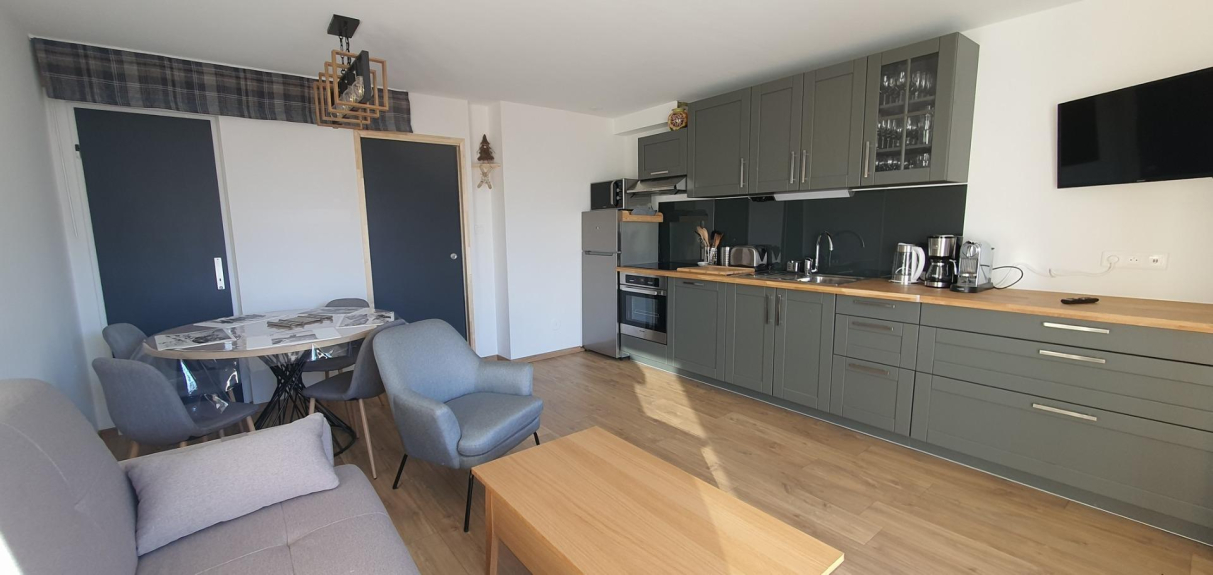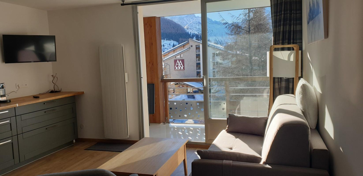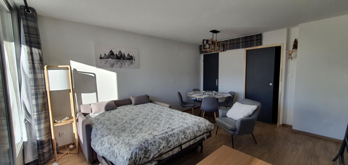Magnificent studio at the foot of the slopes, south facing with a clear view on the glacier and the slopes.