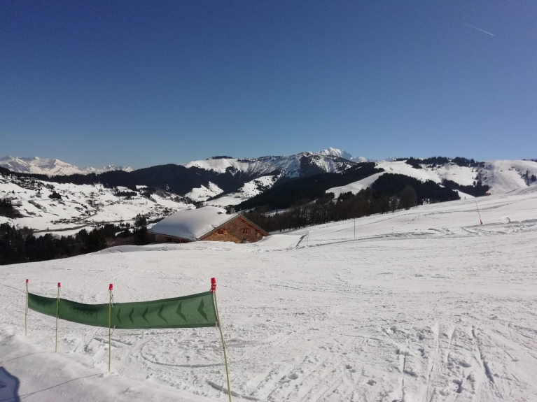 on the slopes in winter, green slope of Créstera and under the Retour Station, green slope too.