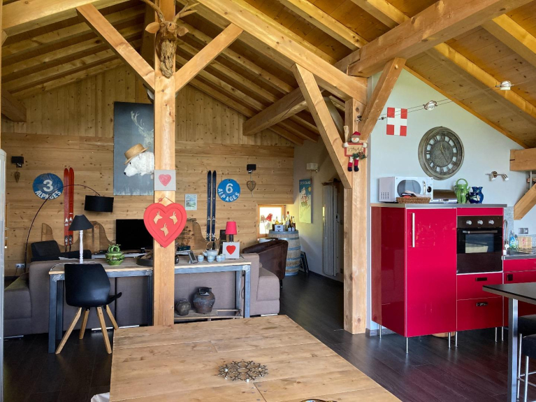 with a panoramic view on the MONT BLANC, the ARAVIS and the MONT CHARVIN, charm, comfort, atmosphere, for an unforgettable stay, with friends or family.