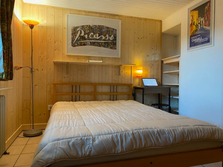 Apartment, 60m2, located on the ground floor of a family chalet. 3 bedrooms, each equipped with a double bed (140cm, 140cm and 140cm + 1 single bed above), living room, 2 showers and 2 toilets. The chalet is ideally located near the center of Villard de Lans (700m/10 minutes walking distance). 300 m to the free ski shuttle. Great location with a view of Villard de Lans and close to hiking trails ("Pont de l'Amour", the Villard balcony). When the snow conditions permit, it is even possible to return from the ski slopes to the chalet by ski. 2 parking spaces. Garden on two levels with garden tables and children swings. Barbecue in one of the places. Wifi, large-size flat TV. Open plan kitchen, equipped with large fridge / freezer, microwave, 4 plate stove, oven, racelette, dishwasher. Ski-shelter. Washing-machine.