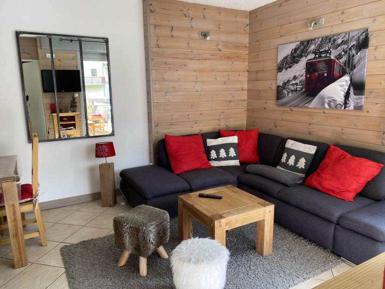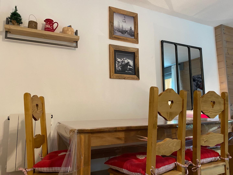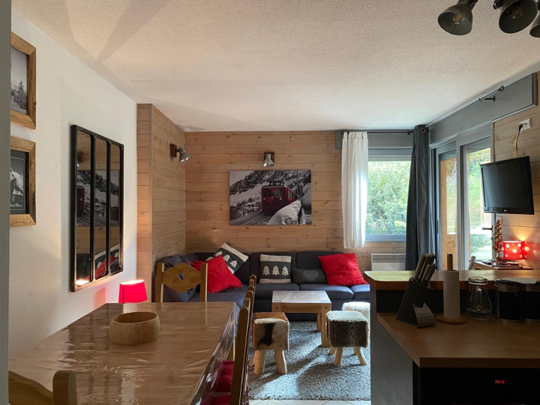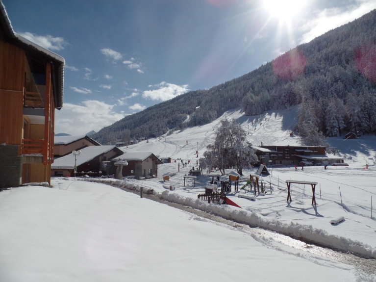 Very nice south facing apartment, at the foot of the slopes with a beautiful open plan living room facing the snow garden. Direct access to the ski lessons and the gondola by its terrace.