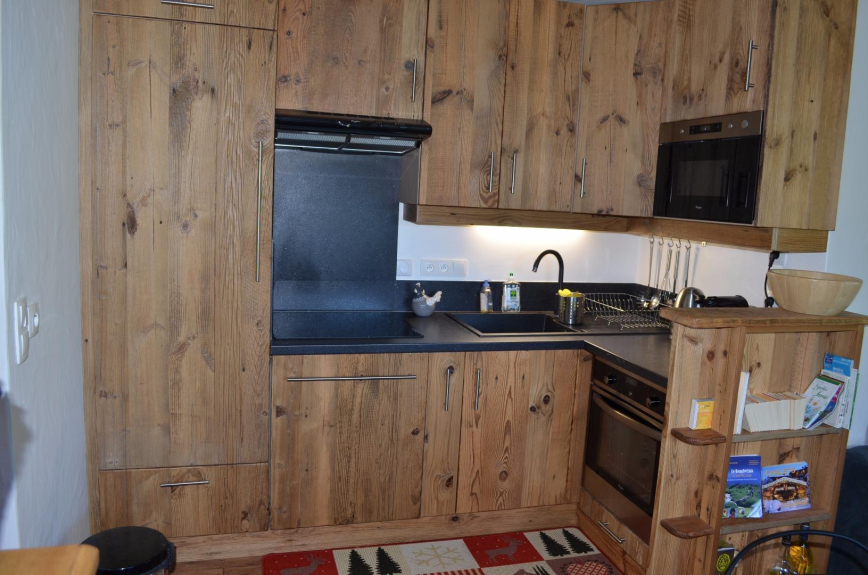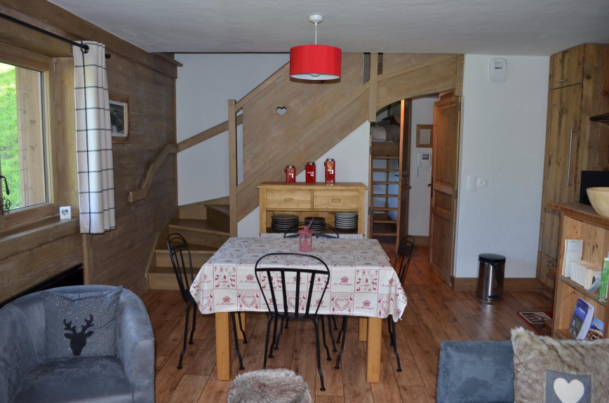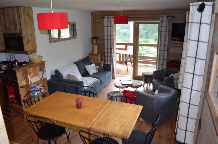 Situated on the heights of the village of Arèches, the apartment is situated on the 3rd floor by a big chalet.