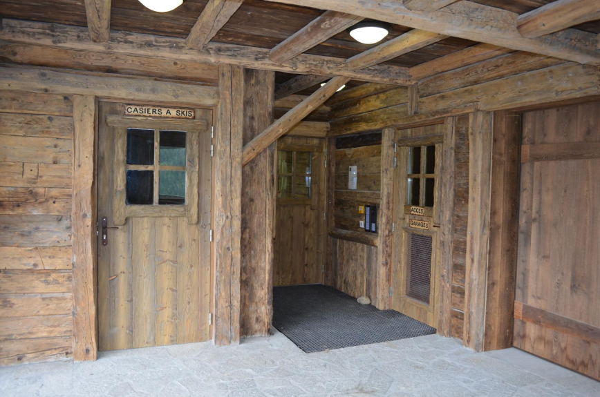 The apartment is rented with a closed internal garage and a ski rack.