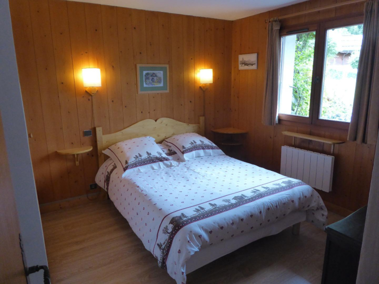 Apartment on the ground floor of the owners' chalet. Very calm environment, with a clear view on the surrounding summits: (Dômes de Miage, Mont Joly, Roselette, ski slopes...). Labelled "Famille Plus".