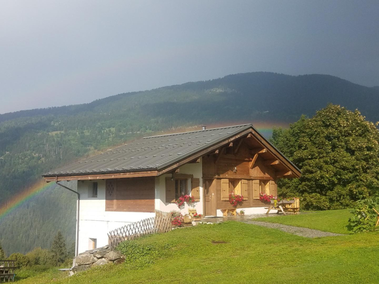 Individual chalet located in front of the Mont-Blanc massif and overlooking the Saint-Gervais valley. The chalet is a new construction (completed in 2016) with an authentic character and a traditional mazot. Classified 2 stars.