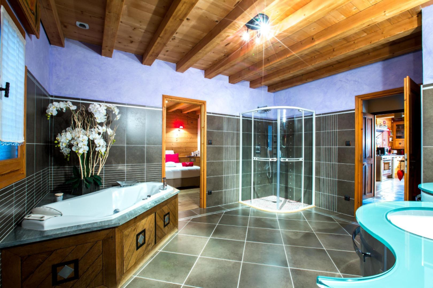Magnificent mountain chalet, 360 square meters, contemporary, very beautiful living space, living room with huge fireplace, large reception table, large rooms, private bathrooms. Very nice amenities.