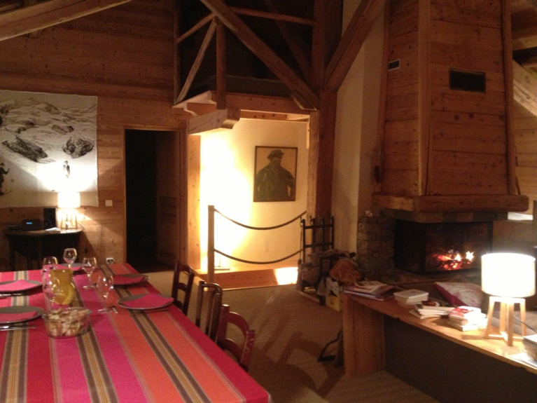 On the first floor you will find a very spacious and bright living room opening onto a large bay window on a balcony where you can sit and enjoy the view (Mount Mirantin, Pierra Menta). This room also includes a beautiful central fireplace and all the comfort you need after a good day outdoors.