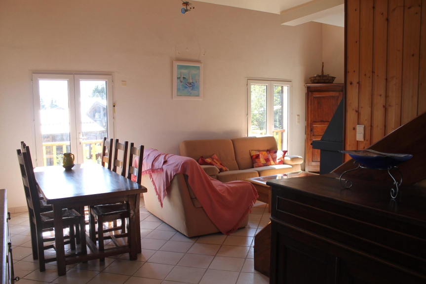 On the ground floor, you will have 2 bedrooms (double bed) with shower room, and on the mezzanine, a bedroom (double bed) with adjoining bathroom and a bed area (2 single beds) overlooking the living area. On the ground floor, the living room with open kitchen will welcome you for good moments with family or friends by the fire. We also give you access to the garage to store your ski gear, bikes, ...