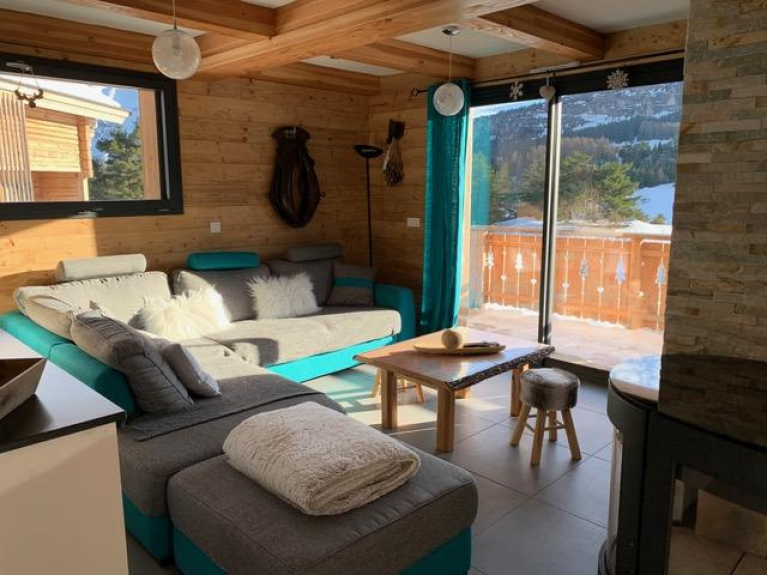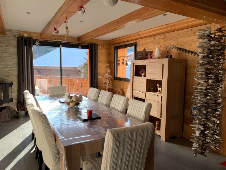 Chalet with all the comforts (underfloor heating, free wifi, ski room, garage), built in 2017, well exposed with panoramic view, quiet and located 400 meters from the slopes.