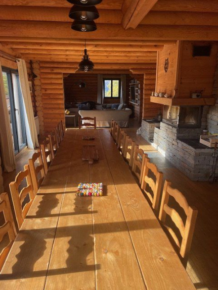 Dining room equipped with a large table made to measure of 4 m for 16 chairs.