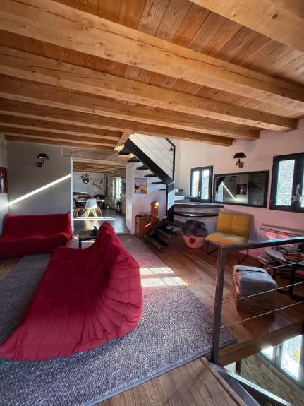 Space and warm intimacy on 3 levels with beautiful views on the valley and the mountain.