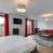 The Chalet has 16 rooms with 16 private bathrooms including 29 single beds, 28 of which can be converted into double beds using hotel deluxe bedding with extra mattresses, as well as 2 double beds and 3 sofa beds for 39 people. Most of these rooms have a balcony. 2 sofa beds are also available in the relaxation room. The total number of beds is thus 43.
