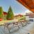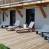 It has armchairs and deckchairs, several outdoor tables, a gas barbecue, a brazier and a trampoline.