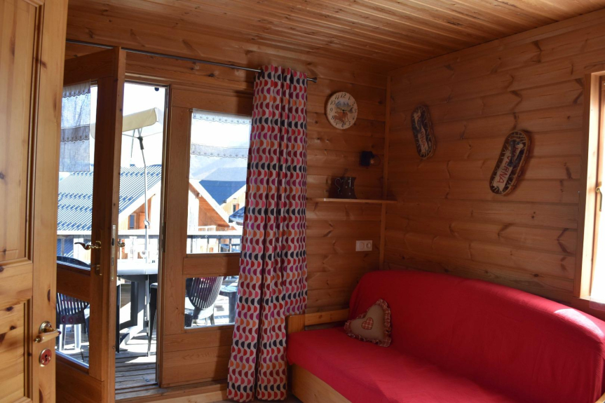 In the heart of the Sybelles ski area, in a wooden chalet of 6 units, single storey apartment with a south facing terrace, in the residence " Les Marmottes ".