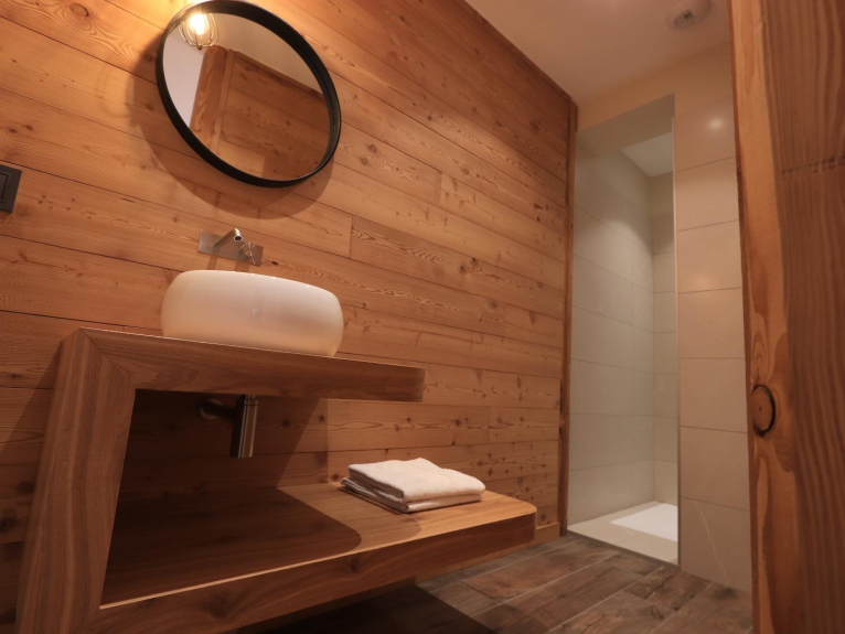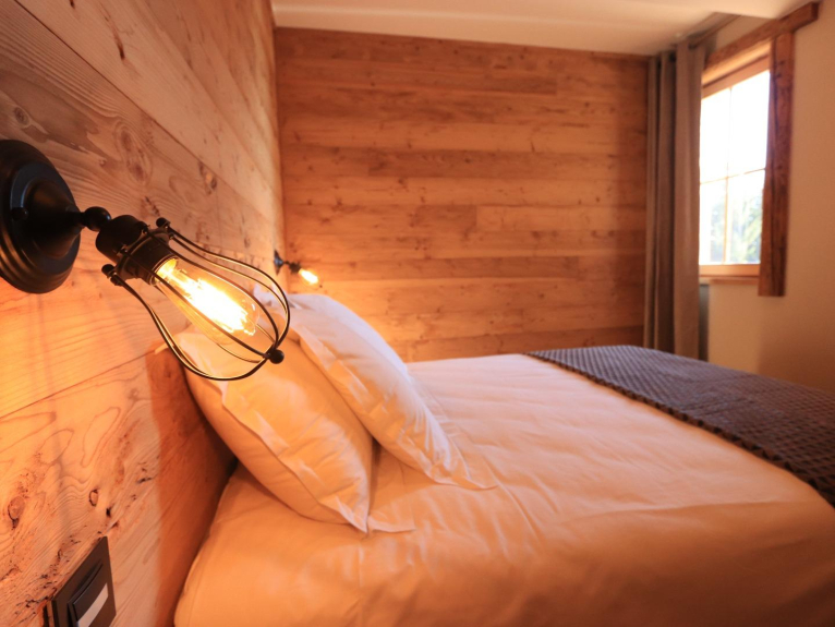 The 160m² apartment can accommodate up to 12 people. Facing south, L'Ardoisière 1 has a large terrace where you can enjoy an incredible panorama of the snow-covered peaks in winter and the green mountain pastures in summer. The elegant and contemporary mountain decoration makes it a pleasant and warm place to enjoy your stay.