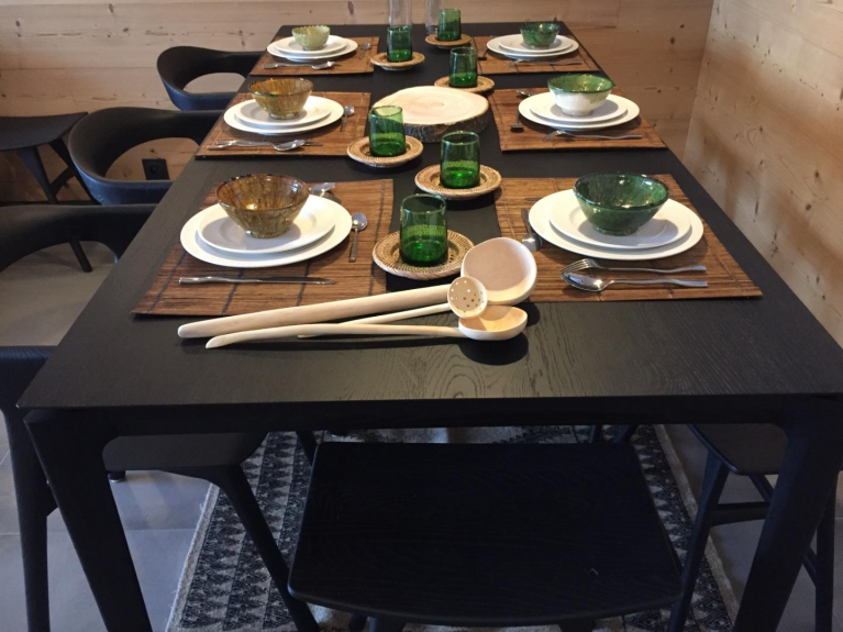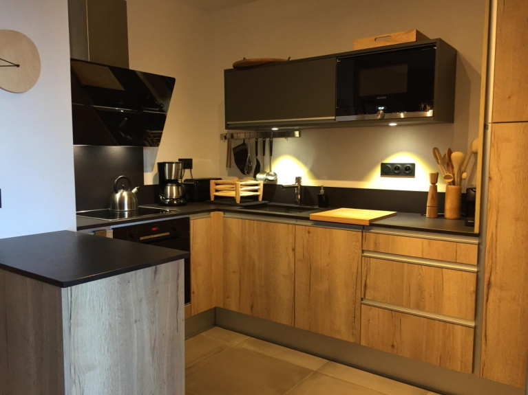 modern and cosy decoration mainly with oak furnitures and some decorations collected from our travels for personal touch.