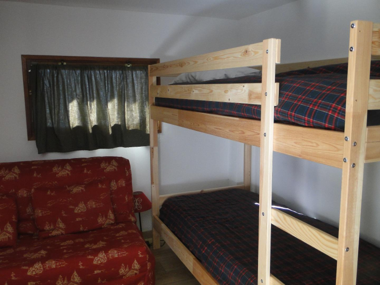 a second room with a sofa bed 140 and 2 bunk beds and its bathroom with toilet. with access from outside.